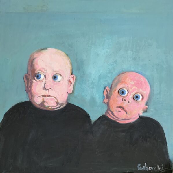 Mixed Media: Oil on Canvas with Protruding Eyes